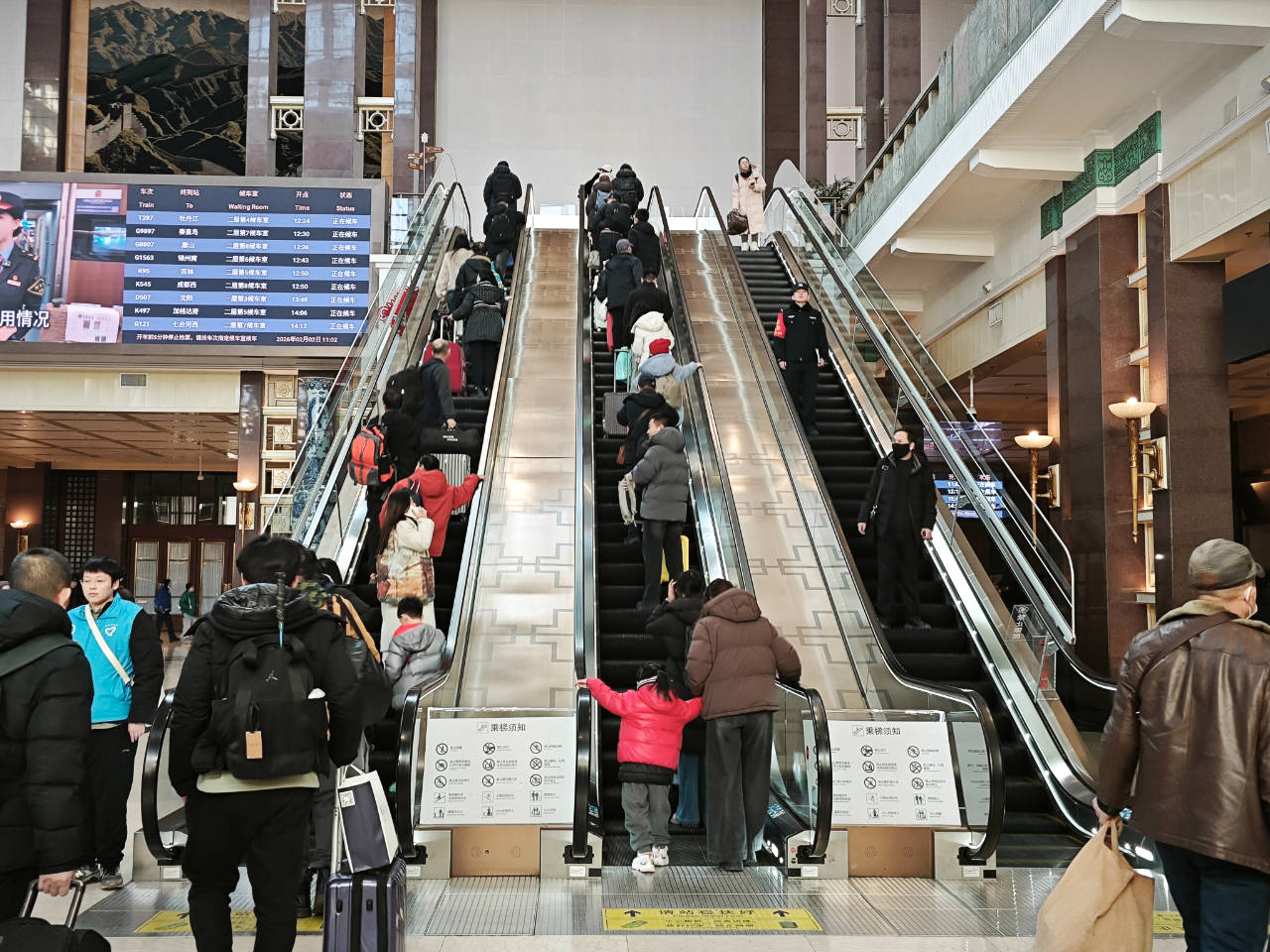 此外,为应对春运客流,北京站科学优化进出站组织,全力保障客流有序疏导。车站设置急客与爱心绿色通道,客流高峰时段专人引导,为临近开车15分钟的旅客及重点群体提供优先进站、安检、检票服务。