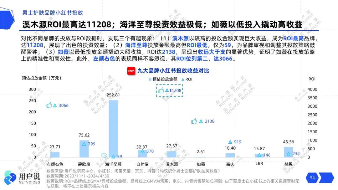 不同于海洋至尊,如薇均以较低的投放金额撬动了⼤额收益,2024.04MAT如薇在小红书的投放金额仅2.51万元