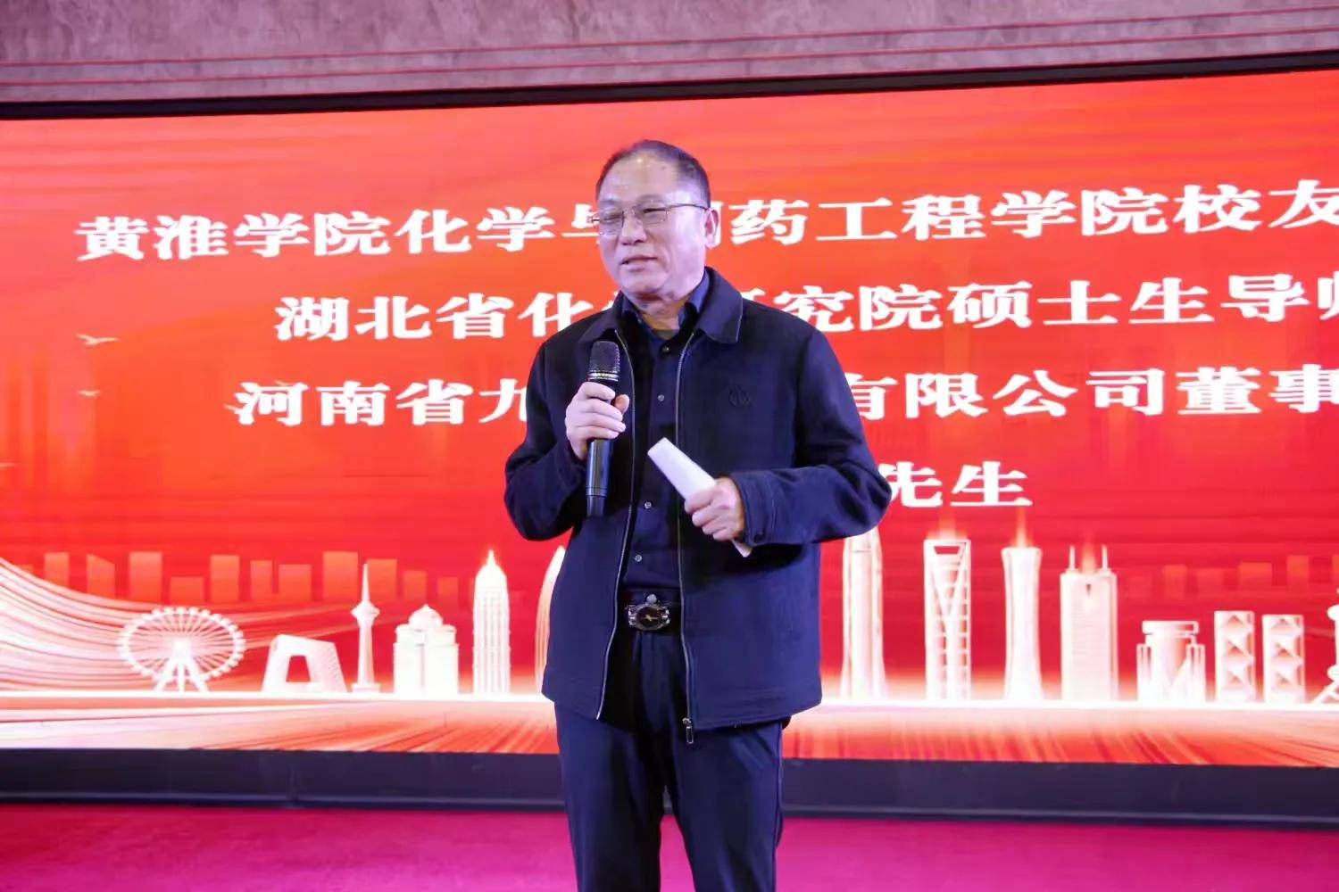 黄淮学院化学与制药工程学院校友会会长、湖北省化学研究院硕士生导师、河南省九和化工有限公司董事长刘景民深情回顾了企业多年来的发展历程,以及与黄淮学院长期以来紧密合作、携手共进的深厚情谊。他表示,展望2026年,公司将进一步深化与黄淮学院的全方位合作,重点推进技术创新平台共建、人才双向交流培养、科研成果转化应用等工作,与学院、各位校友及全体员工携手并肩、同心聚力,在高端化工领域持续创新突破,共同推动行业高质量发展。