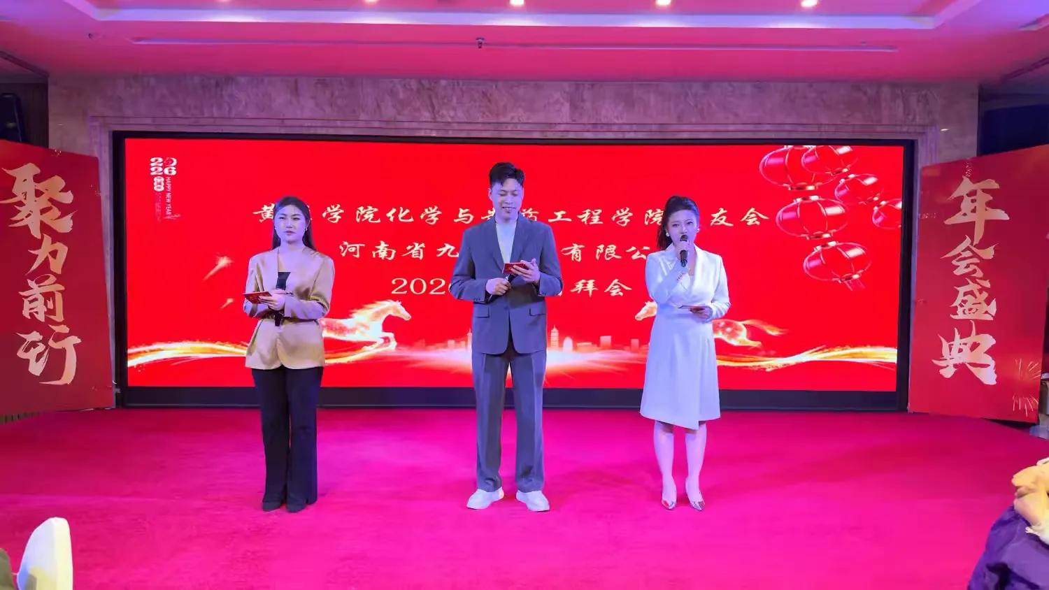 活动伊始,黄淮学院化学与制药工程学院校友会常务副秘书长与九和化工主持人联袂登台,代表主办方对全体来宾的莅临表示热烈欢迎,向长期以来关心支持学院建设与企业发展的社会各界人士致以诚挚谢意,同时送上饱含美好期许的新春祝福,正式拉开了本次新春团拜会的序幕,现场洋溢着温馨祥和的团圆氛围。